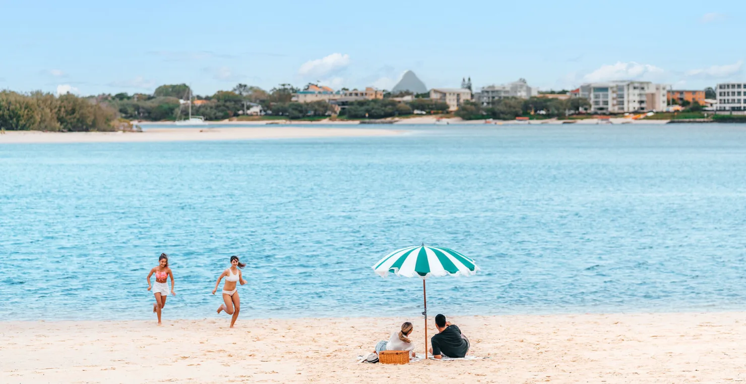 Family beach day at Bulock Beach Caloundra