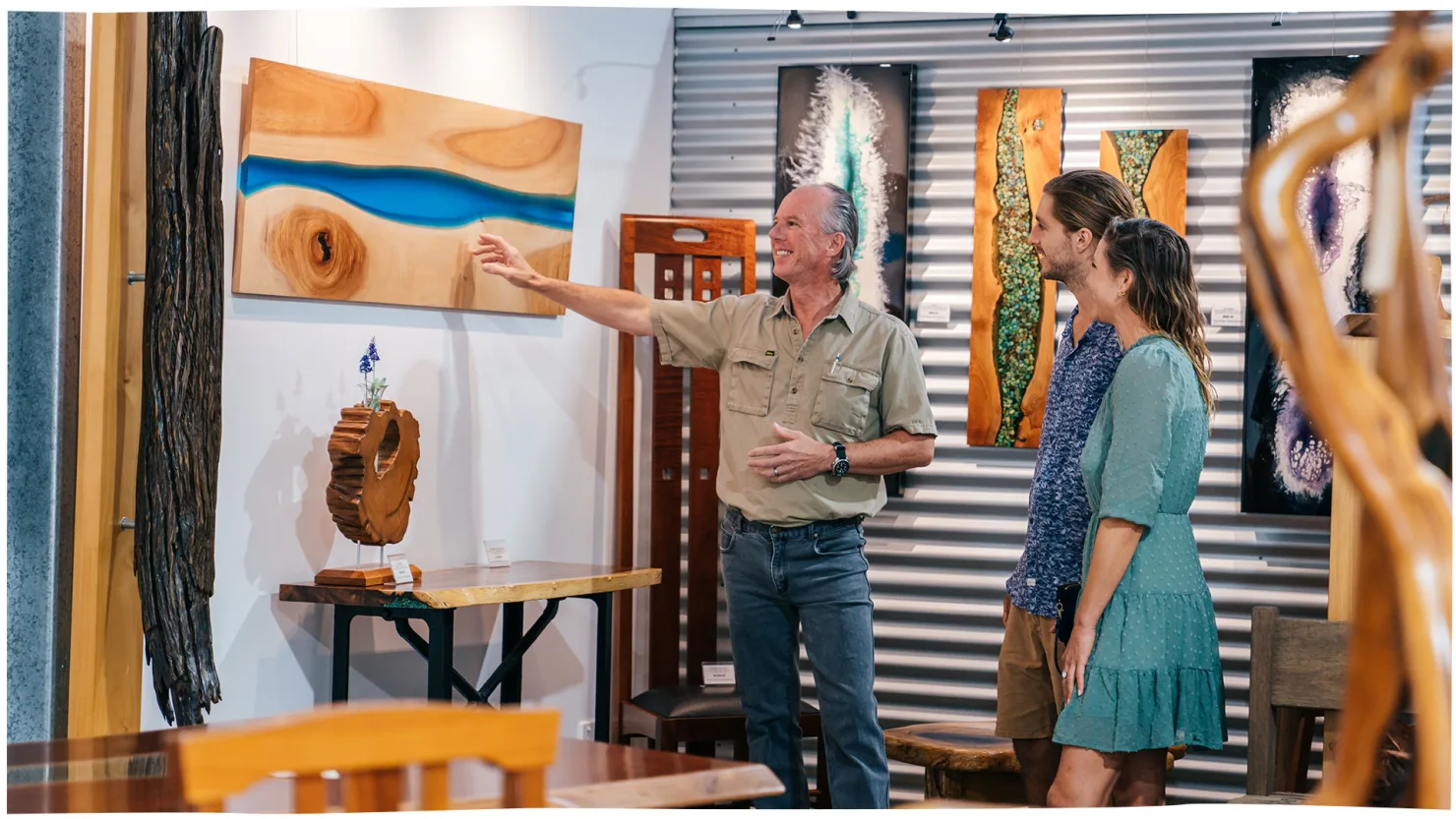 From timber artworks with resin colours that mirror a glacial lake to bespoke, carefully crafted furniture pieces, the craftsmanship here will take your breath away.